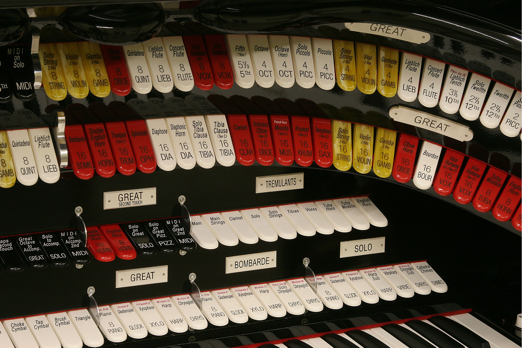 - Más de 250 voces diferentes: registros de órgano, pianos de cola, orquestales, voces de teclado y percusión
